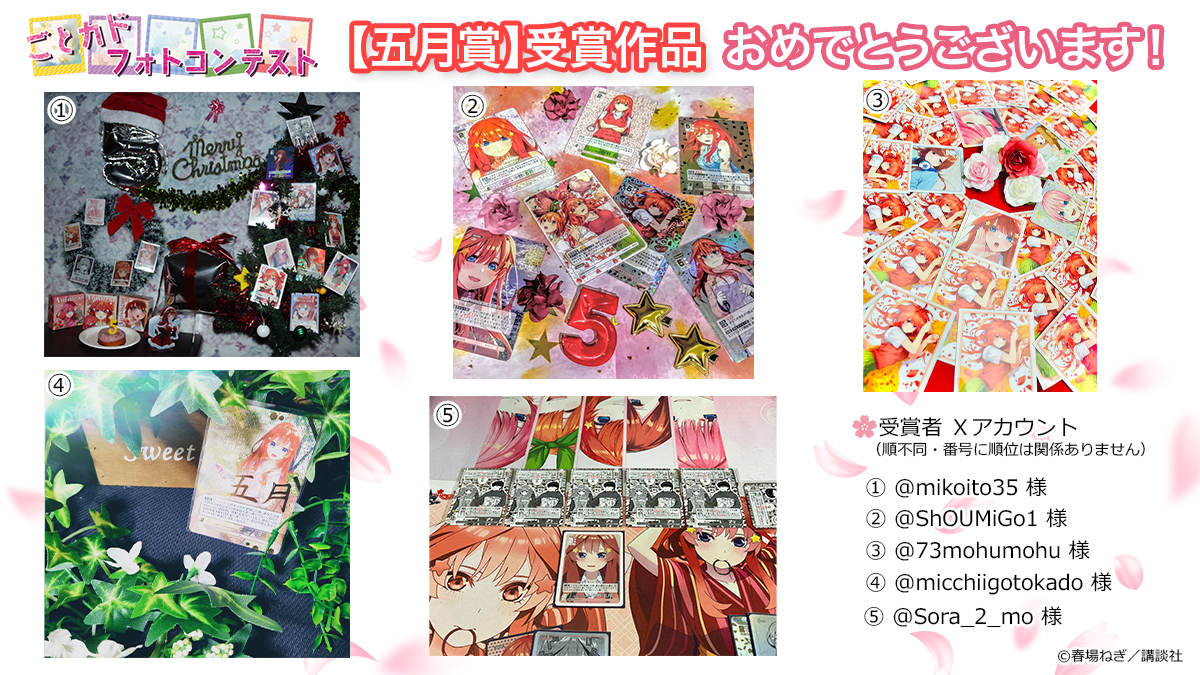 ①『五等分の花嫁 カードゲーム』を使用したコレクション・ディスプレイ写真を添付(カードは何枚使ってもOK!)