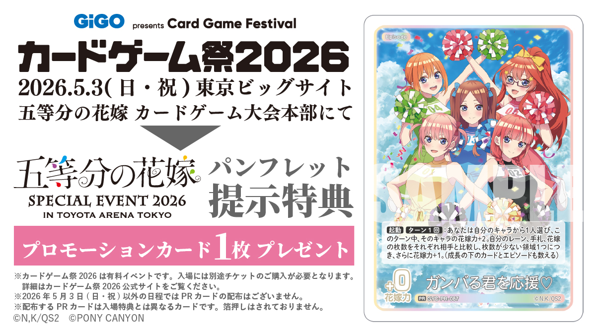 カードゲーム祭2026五等分の花嫁カードゲーム大会受付提示でPRカードをプレゼント✨
