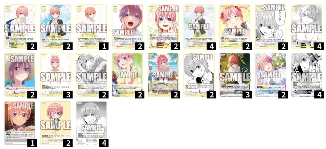 実際に収録されているカードは加工、レアリティ、デザイン、カード番号が異なります。